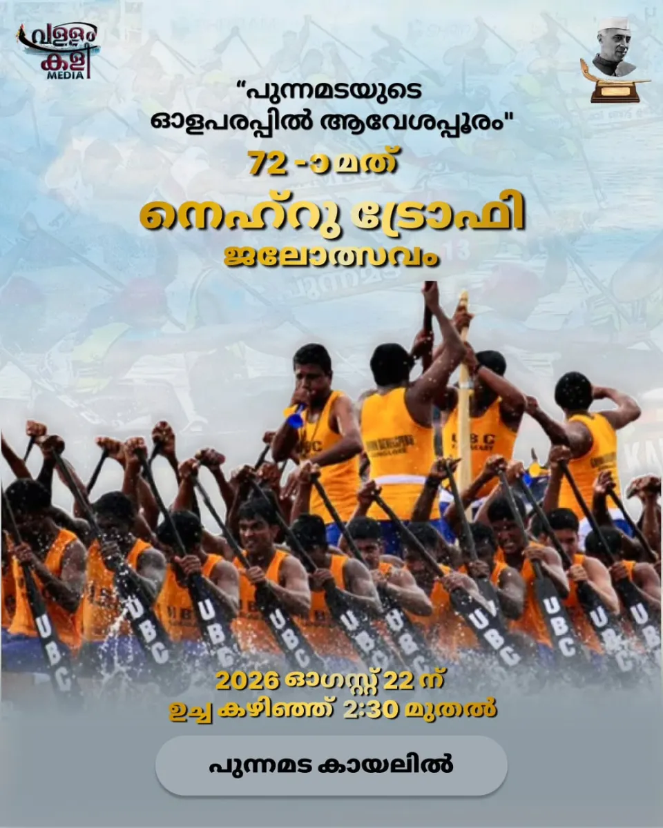72-ാമത് നെഹ്റു ട്രോഫി വള്ളംകളി 2026 ഓഗസ്റ്റ് 22-ന് ശനിയാഴ്ച്ച പുന്നമടക്കായലിൽ നടത്താൻ നെഹ്റുട്രോഫി ബോട്ട് റേസ് സൊസൈറ്റി എക്സിക്യൂട്ടീവ് കമ്മറ്റി യോഗം തീരുമാനിച്ചു. #vallamkali #ntbr #thuzhathalam #nehrutrophyboatrace #kuttanad