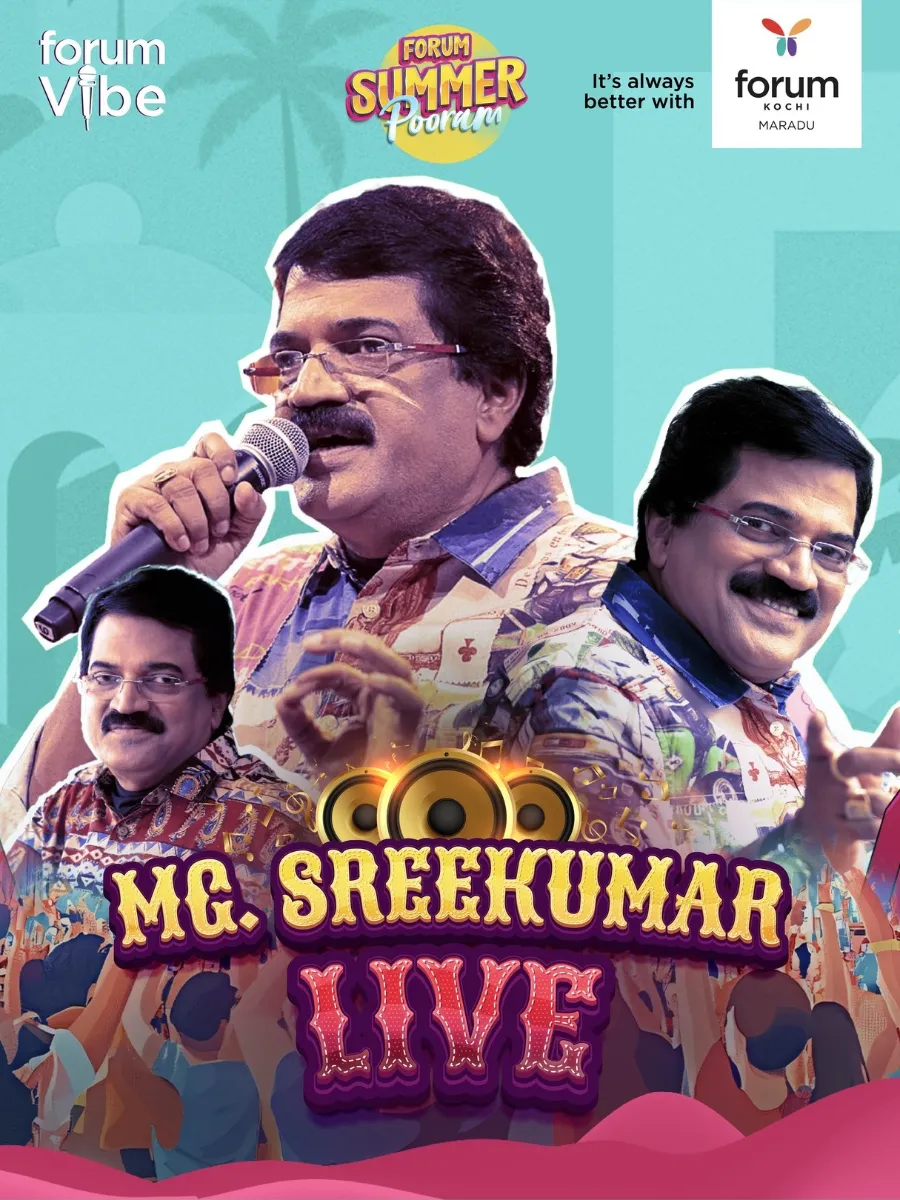 The OG of Malayalam music comes live with MG SREEKUMAR LIVE! From evergreen classics to songs that defined generations, M. G. Sreekumar is set to bring it all to one stage — turning the night into a full-blown musical celebration. 🎤🔥 Every lyric you know. Every vibe you’ve felt. All coming alive, together. 📅Date: 2nd May 🕡Time: 7 PM Onwards 📍Venue: Forum Terrace This is more than music. This is memory, emotion, and madness in one night.