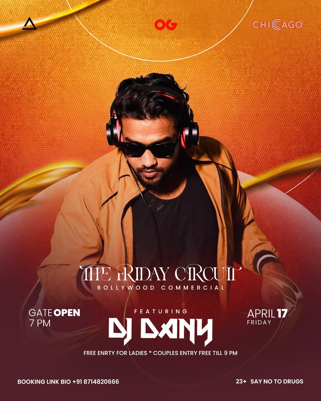 πŸ”₯ THE FRIDAY CIRCUIT πŸ”₯ Turn up your Friday night with pure Bollywood commercial energy at OG’s Chicago ⚑🎢 Get ready to lose yourself on the dance floor as DJ Dany drops the hottest tracks all night long 🎧πŸ’₯ Feel the bass. Own the night. Live the vibe. πŸ•ΊπŸ”₯ ✨ Free entry for ladies πŸ’‘ Couples entry free till 9 PM πŸ“… April 17 | Friday ⏰ Gates Open: 7 PM πŸ“ OG’s Chicago This is your sign to gather your crew and make it a night to remember 🍻✨ πŸ“ž Book now: +91 8714820666 #ogschicago #bollywoodnight #partyvibe #kochin #kochi